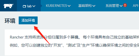 1. 然后点击环境管理,添加Kubernetes环境,这个时候需要添加主机,这里最少添加三个主机,不然kubernetes dashboard打不开